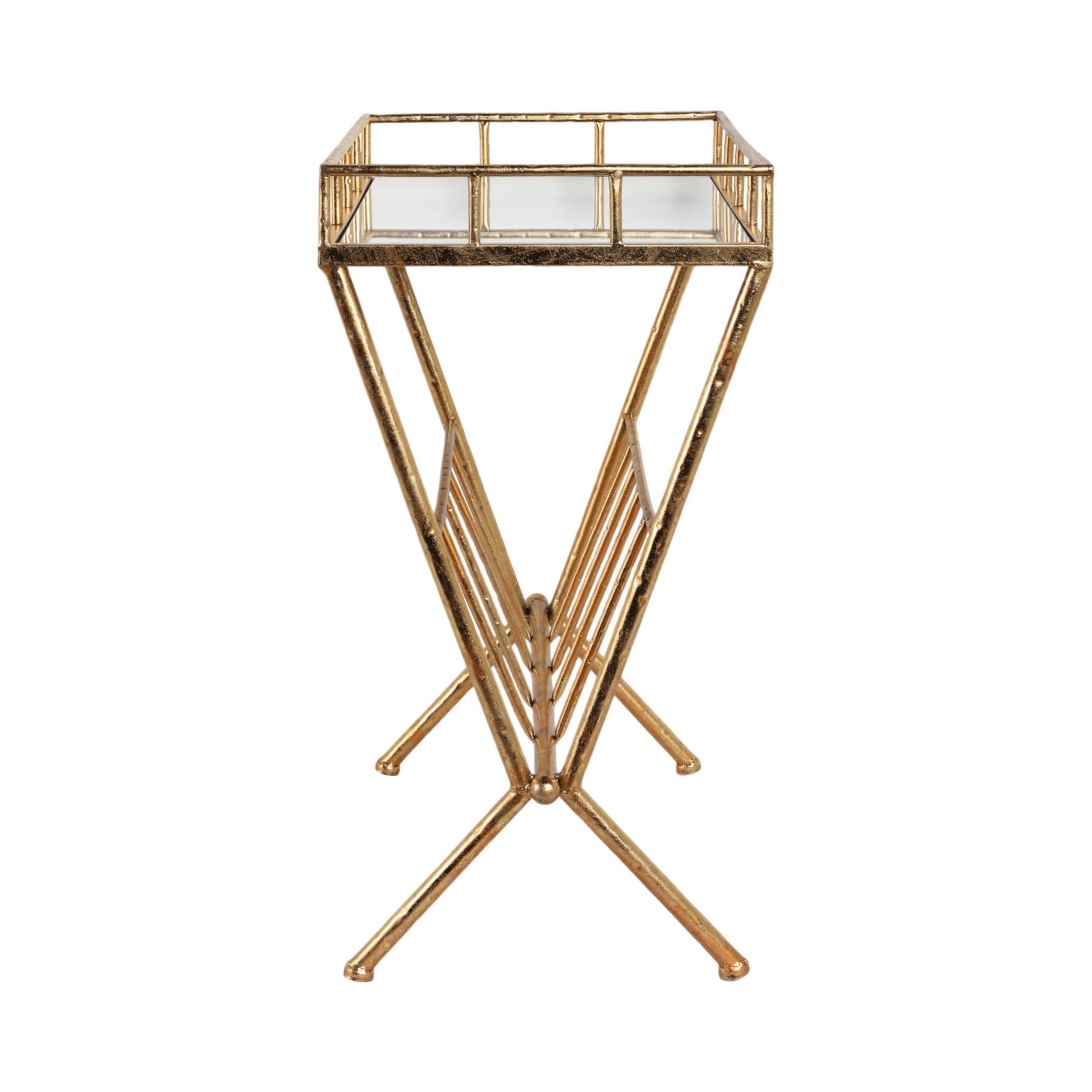23 in. Tall Gold Metal 2 Tier Mirrored Magazine Bookcase
