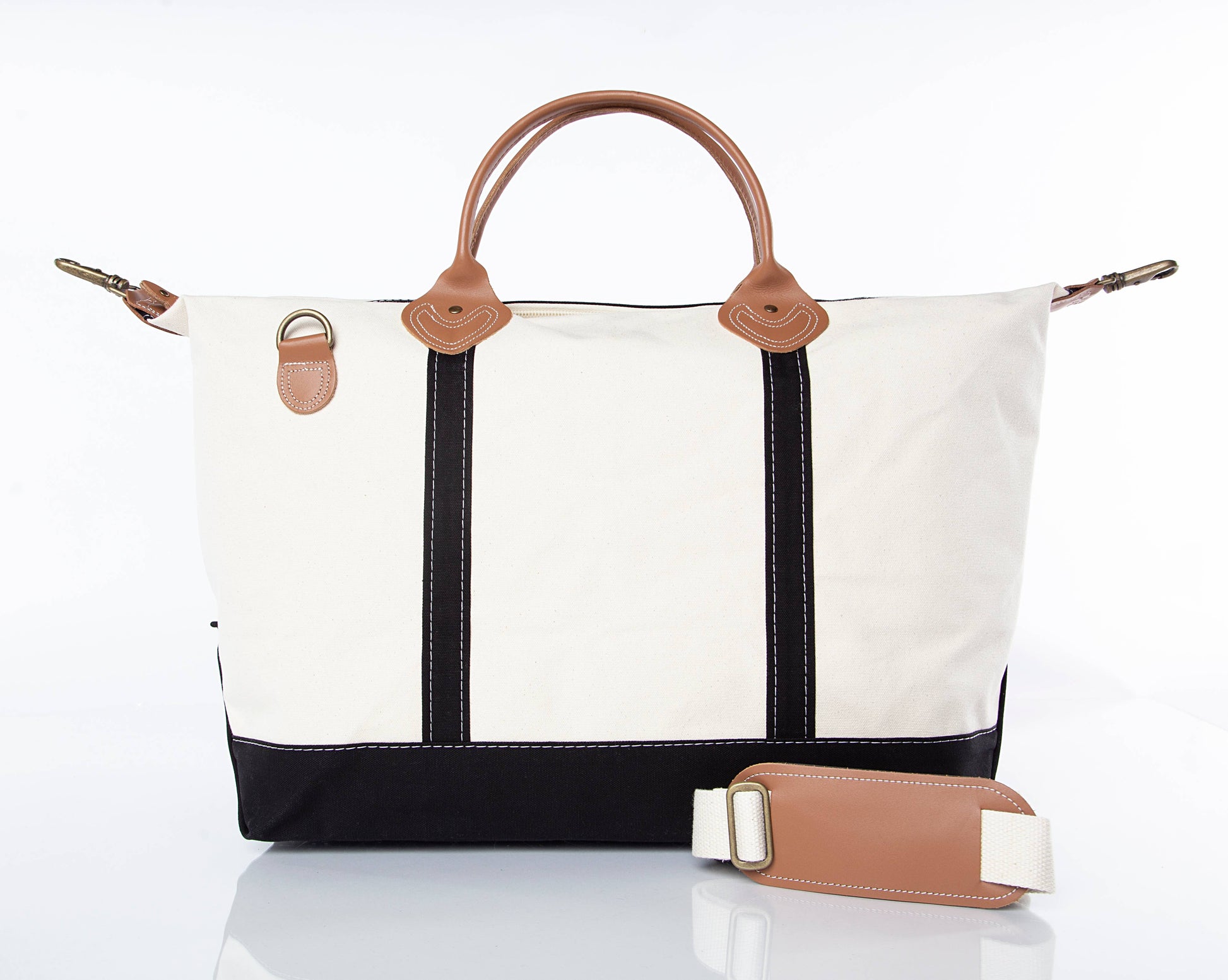 The roomy interior gives you all the space you need for clothes, shoes, and travel must-haves, while the interior zip pocket keeps valuables tucked away. A top zip closure ensures everything stays secure, and the detachable padded shoulder strap with antique brass hardware lets you carry it your way.