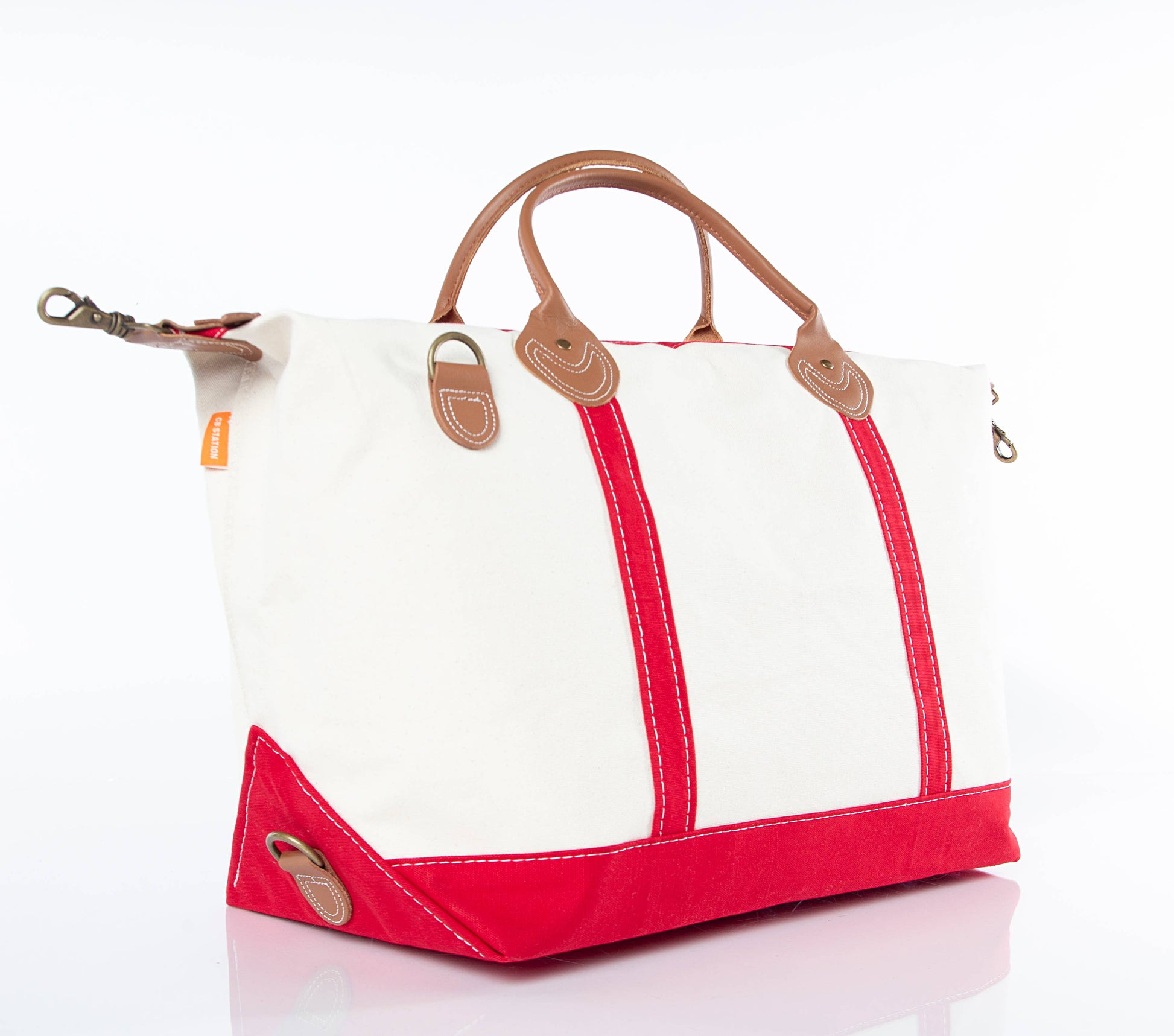 Crafted from sturdy 20 oz canvas, it features a top zip closure, genuine leather handles, and a roomy interior that holds clothes, shoes, and extras with ease. An internal zip pocket adds extra security for your essentials, while the detachable padded shoulder strap makes for comfortable hands-free travel.
